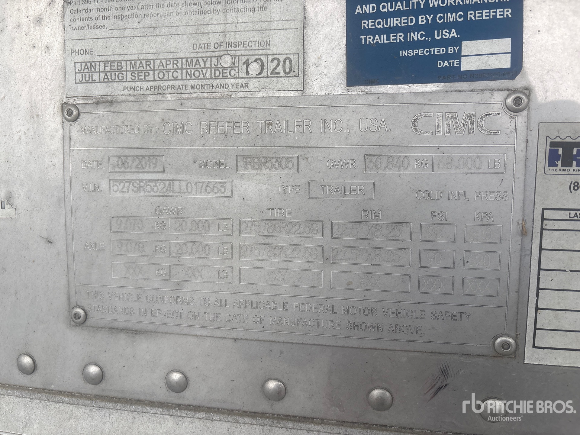 Thermo King Precedent S-600 Refrigeration Unit, Air Ride Sliding Suspension, Side Skirts, Ducted Floor, Swing Door, 295/75R22.5 Tires 68000 lb GVWR