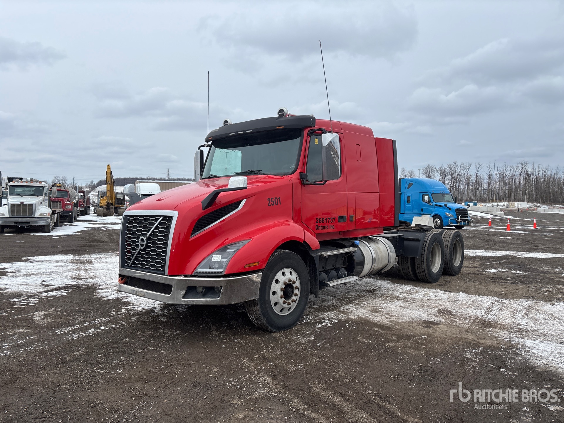 Volvo D13M 405 hp Engine, 2018 US EPA Label, 10515 Engine hrs, Manual Transmission, 14600 lb Front Axle, 46000 lb Rears, 60600 lb GVWR, Engine Brake, Differential Lock, 42 in Sleeper Cab, 221 in Wheelbase, Aluminum Wheels, 11R24.5 Front Tires, 11R24.5 Rear Tires, Air Sliding 5th Wheel, Dual Fuel Tanks