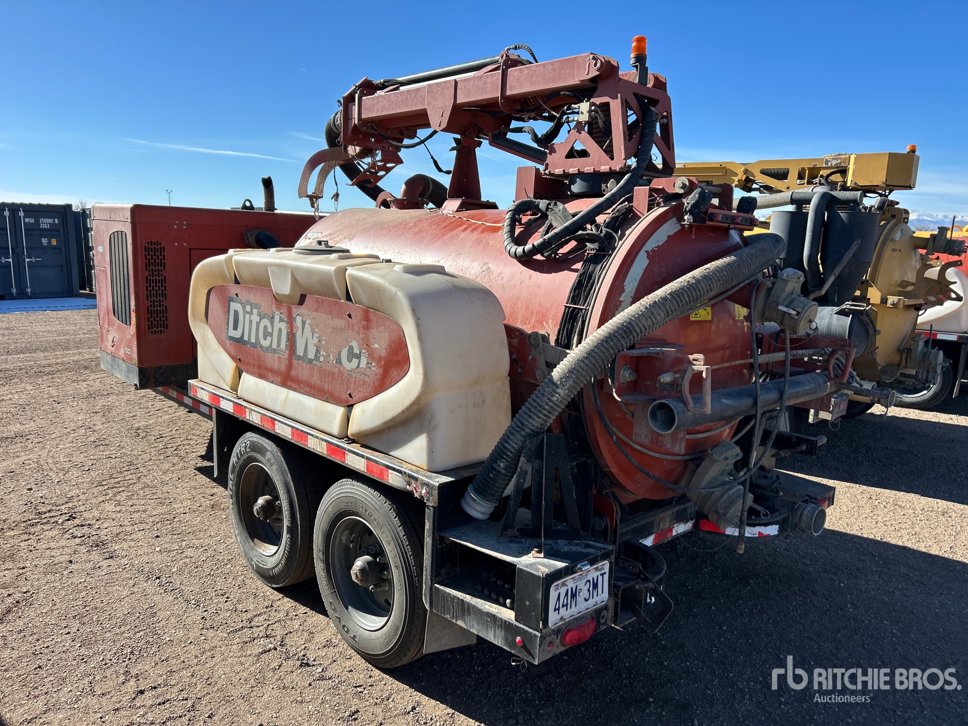 Lunette Ring Hitch, Torsion Axle, Electric Brakes, Ditch Witch Steel Debris Tank, Fresh Water Tank, Hydraulic Lift Tailgate, Telescopic Boom, 4 in Suction Hose, Engine Driven Pump, Tuthill Blower, 235/75R17.5 Tires, 24000 lb GVWR, Diesel Engine