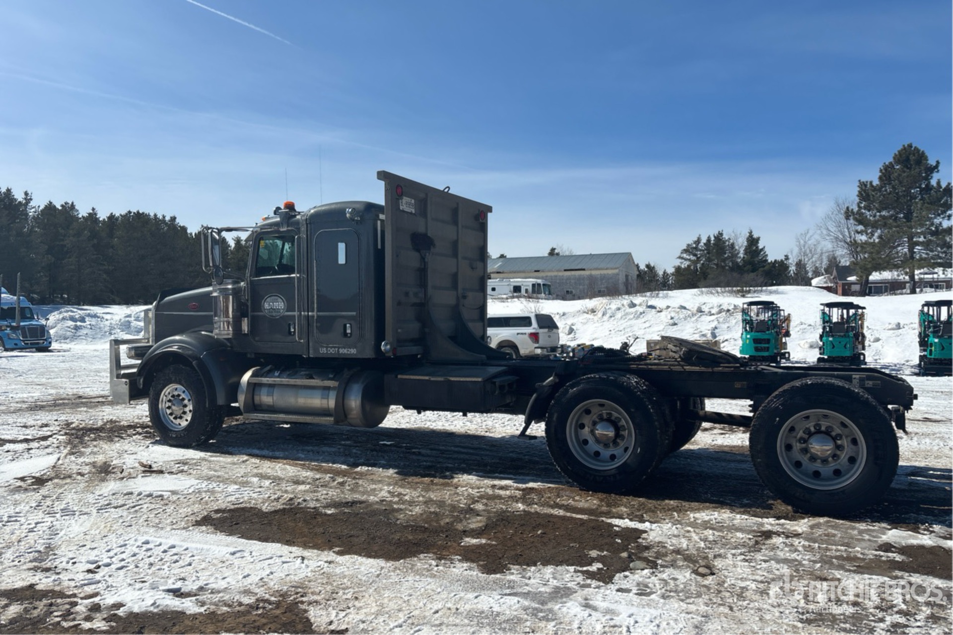 Paccar MX-13 510 hp Engine, Engine Coolant Heater, 2020 US EPA Label, 12416 Engine hrs, Eaton Fuller RTLO-18918B 18-Speed Manual Transmission, 16000 lb Front Axle, 42100 lb Rears, 58100 lb GVWR, Engine Brake, Double Differential Locks, 44 in Flat Top Sleeper Cab, Bunk Heater, 252 in Wheelbase, Air Suspension, Aluminum Wheels, 385/65R22.5 Front Tires, 11R24.5 Rear Tires, Dual Steering Boxes, Double Frame, Air Sliding 5th Wheel, Dual Fuel Tanks, Headache Rack