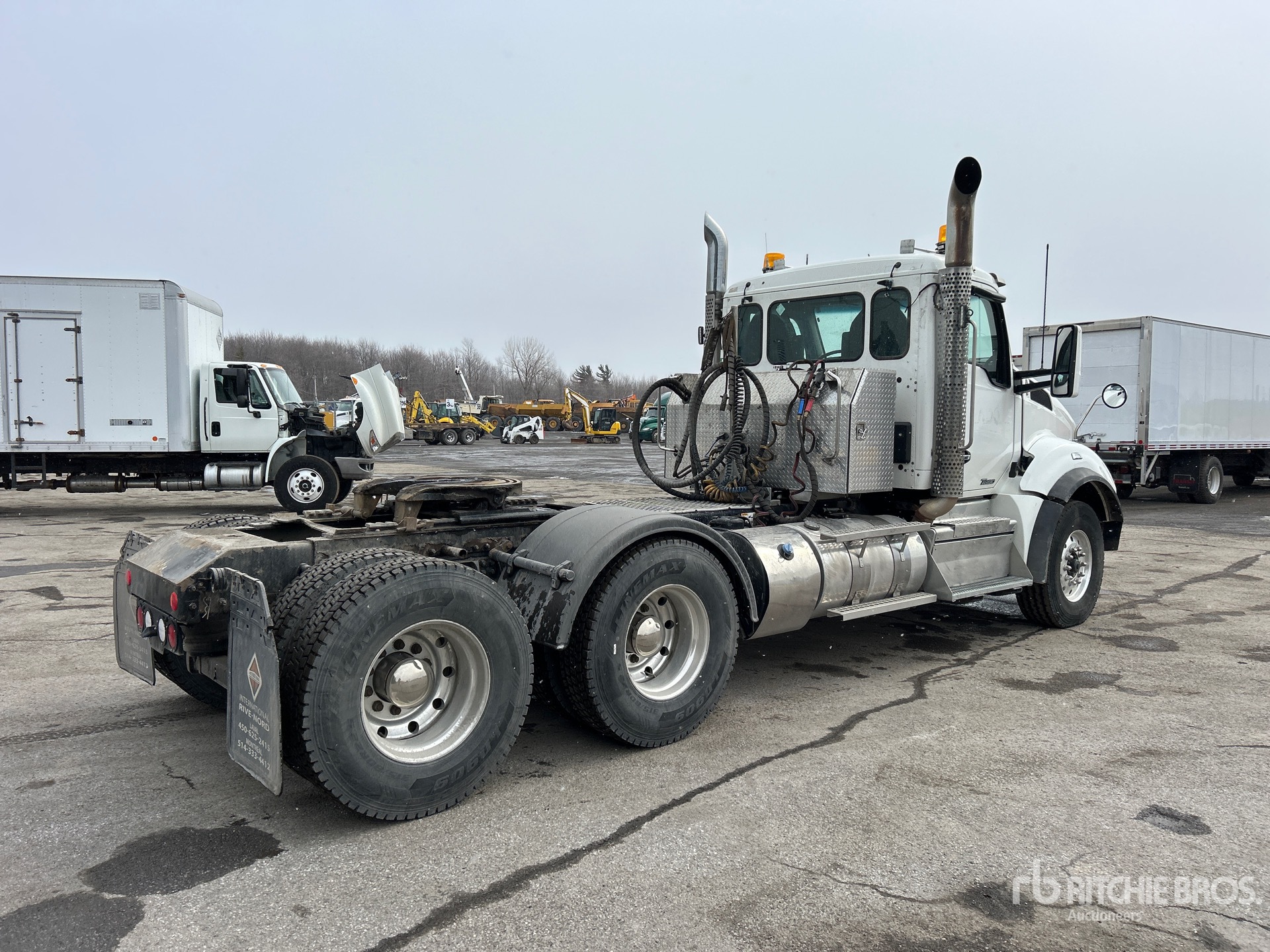 Cummins X15 565 hp Engine, 2021 US EPA Label, 8272 Engine hrs, Eaton Fuller 18-Speed Manual Transmission, 18000 lb Front Axle, 46000 lb Rears, 64000 lb GVWR, Engine Brake, Double Differential Locks, 210 in Wheelbase, Aluminum Wheels, 315/80R22.5, Wet Kit, Air Sliding 5th Wheel, Dual Fuel Tanks