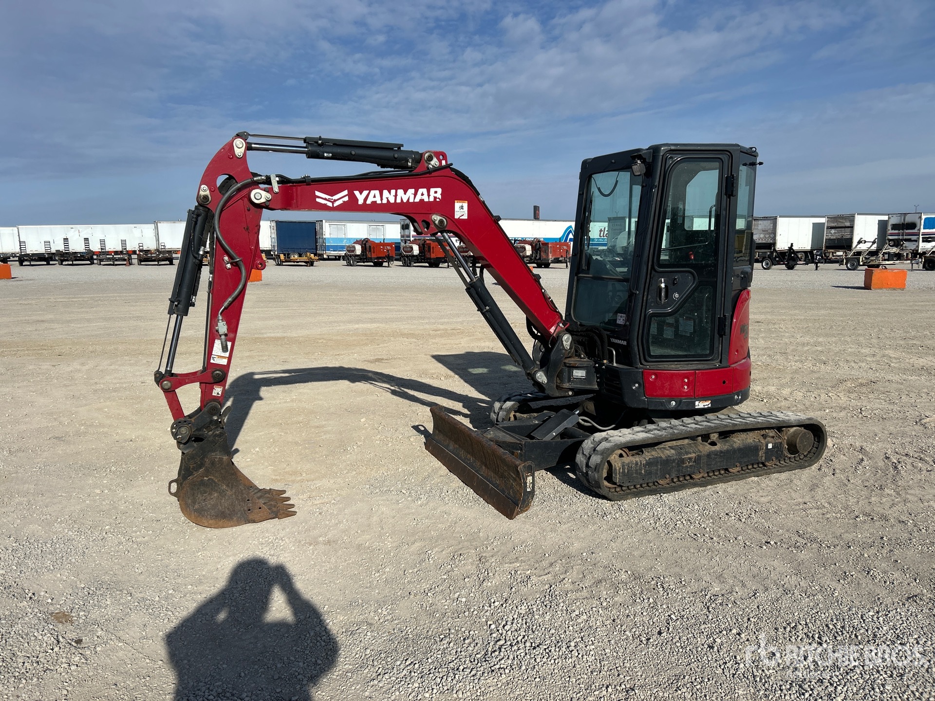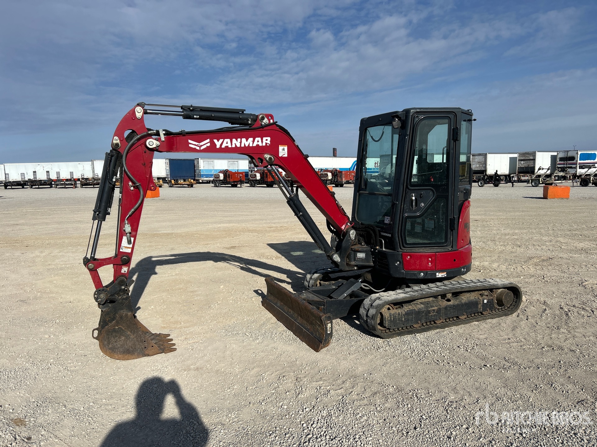Enclosed Cab, Air Conditioner, Control Pattern Changer, Swing Boom, 4 ft 6 in Stick, Auxiliary Hydraulic Plumbing, Power Angle Blade, 12 in Rubber Tracks, Hydraulic Quick Coupler, 17 in Digging Bucket, Equipment-from-Sellenriek-Construction