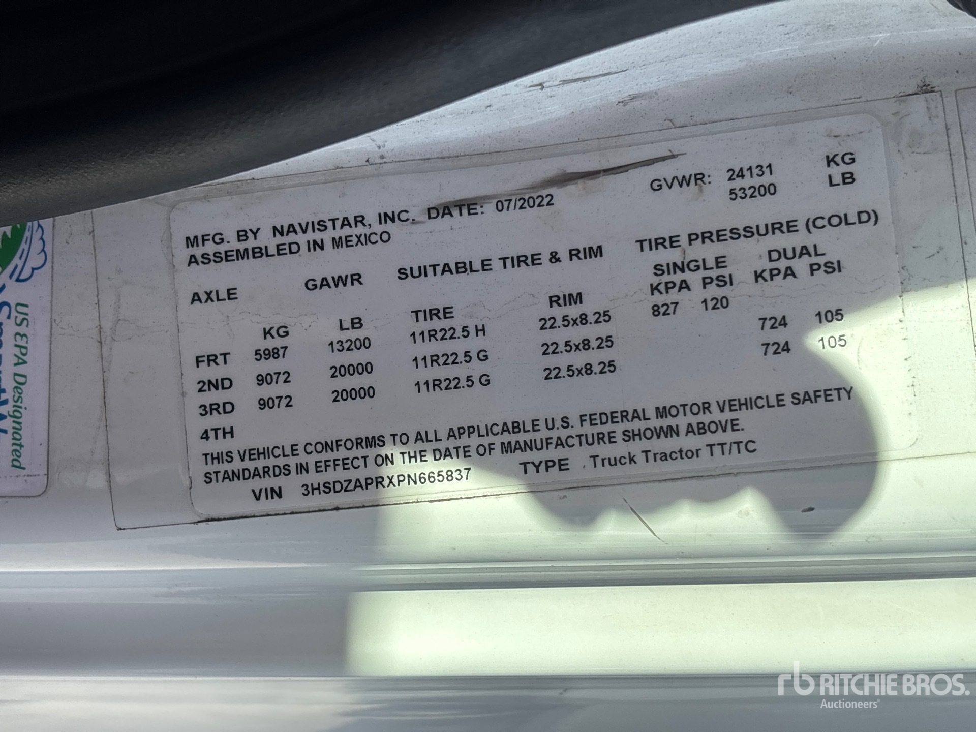 Cummins X15 450 hp Engine, 2022 US EPA Label, 9726 Engine hrs, Automated Transmission, 13200 lb Front Axle, 40000 lb Rears, 53200 lb GVWR, Engine Brake, Differential Lock, 56 in Mid Roof Sleeper Cab, 238 in Wheelbase, 11R22.5 Front Tires, 11R22.5 Rear Tires, Air Sliding 5th Wheel, Dual Fuel Tanks
