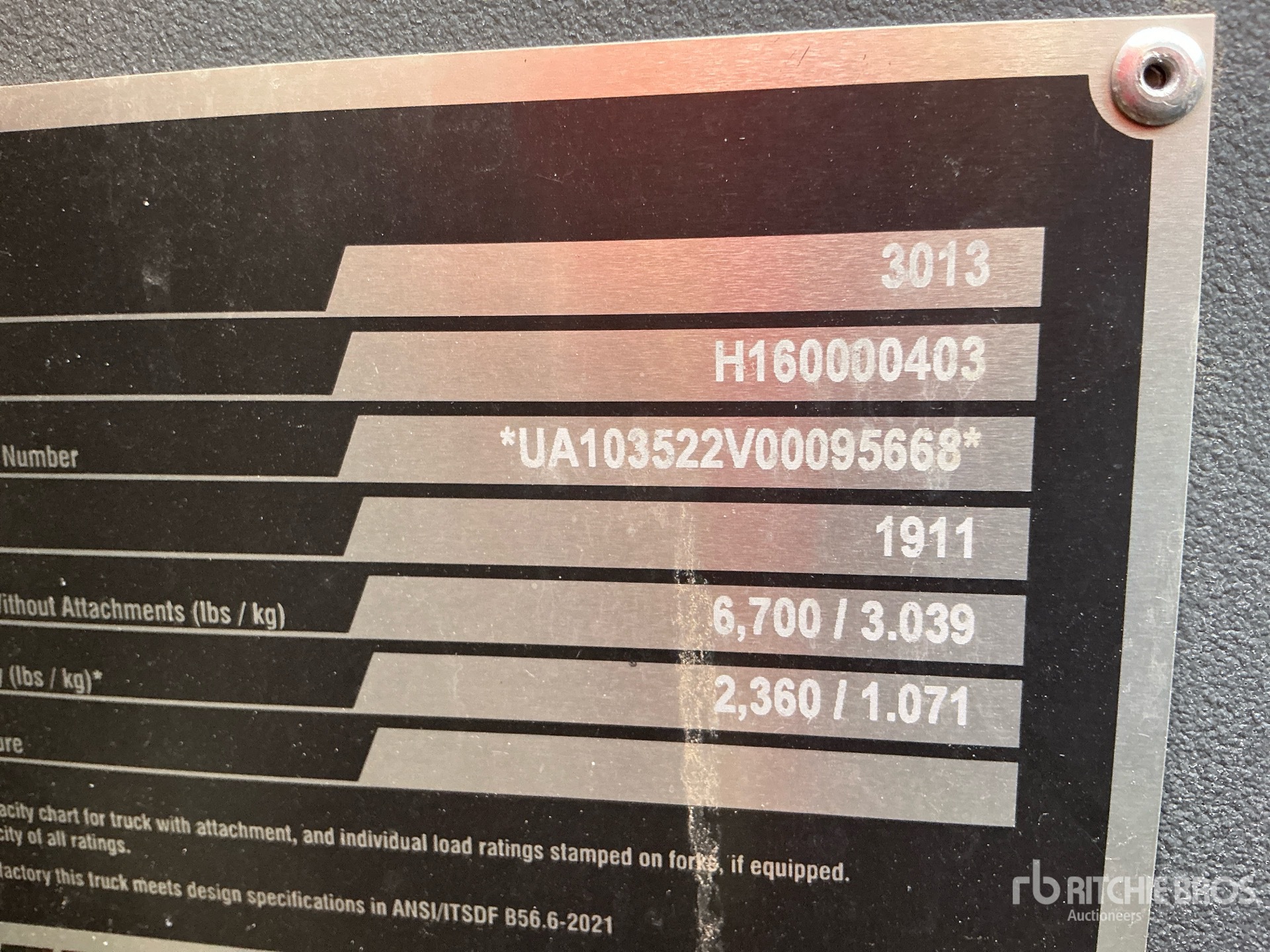 Die detaillierten Artikelinformationen stellen einen begrenzten Bericht dar, und Ritchie Bros. Auctioneers hat ausschließlich die Komponenten oder Aspekte der Geräte inspiziert, die hierin ausdrücklich aufgeführt sind. Sofern nicht ausdrücklich anders angegeben, gewähren wir keinerlei Zusicherungen oder Garantie, weder ausdrücklich noch stillschweigend, bezüglich der Geräte und ihrer Bestandteile einschließlich, aber nicht beschränkt auf Zusicherungen oder Garantien bezüglich Funktionalität, Konformität oder Einhaltung von Sicherheitsstandards, Forderungen zuständiger Behörden oder Regulierungsbehörden, Eignung für einen besonderen Zweck oder Marktgängigkeit. Es wird Ihnen ausdrücklich empfohlen, vor dem Bieten selbst eine genaue Prüfung der Artikel und Geräte durchzuführen.