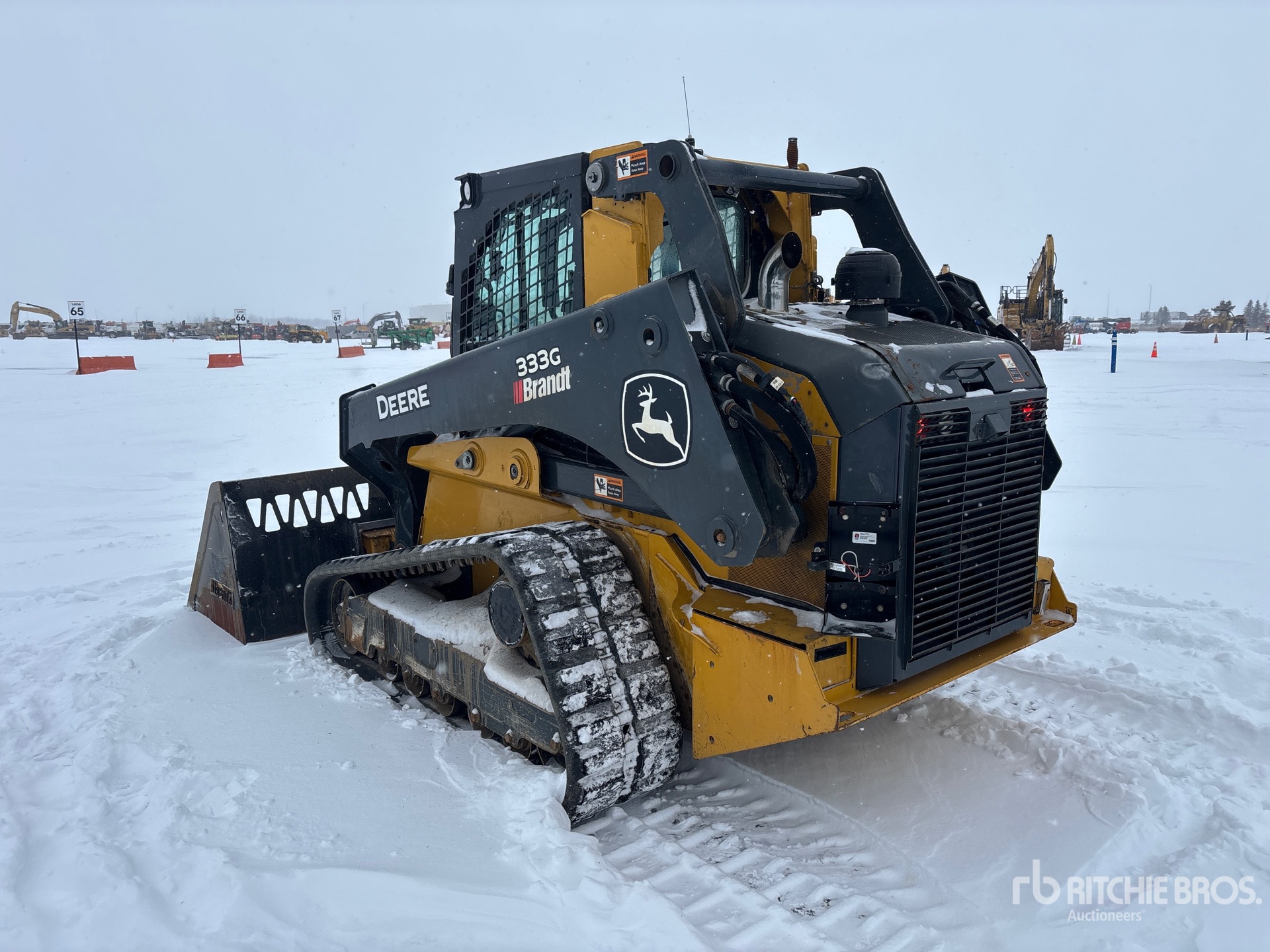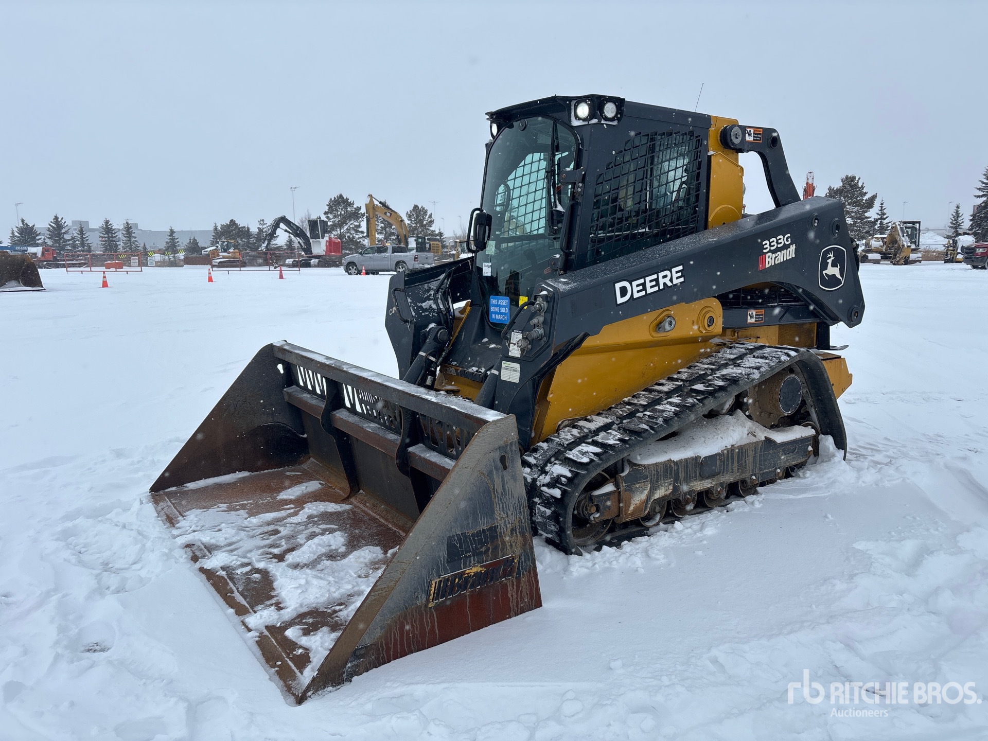 Enclosed Cab, Air Conditioner, Ride Control, Joystick Steering, Self Leveling, Rear View Camera, Requires Diesel Exhaust Fluid, 17.5 in Track Belts, Hydraulic Coupler, 96 in Bucket