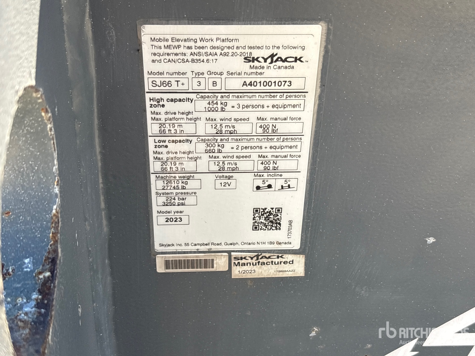 66 ft Max Platform Height, 1000 lb Max Weight Capacity, Jib, 2022 US EPA Label, Deutz 4 Cylinder 55.4 kW 2.9 L Diesel Engine, 385/65D19.5 Tires