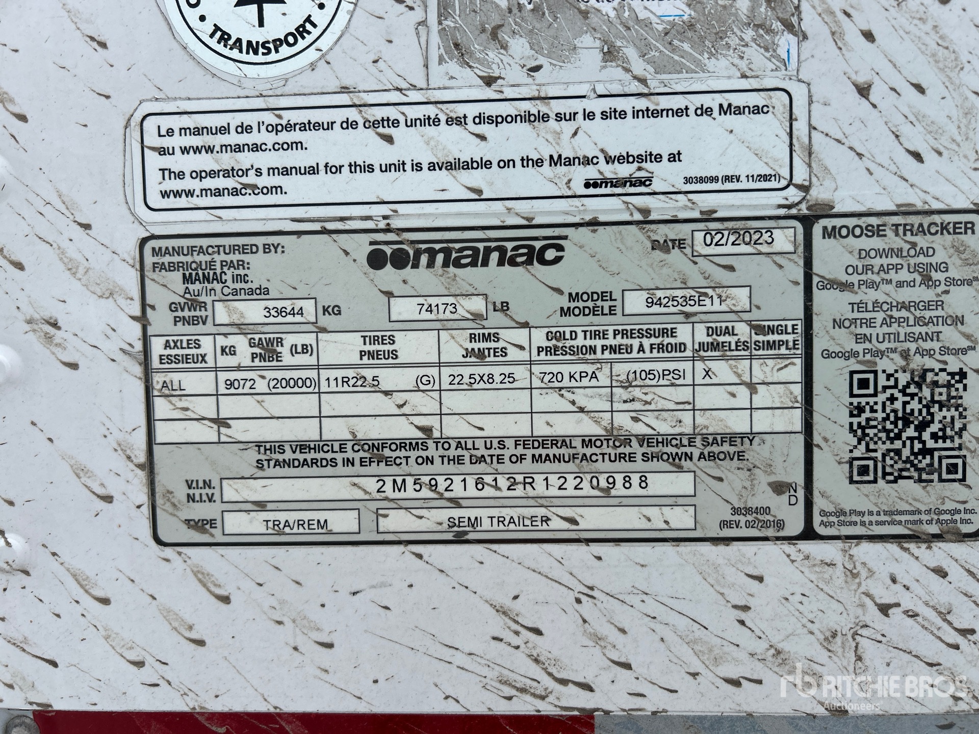 Alle Abmessungen sind ausschließlich Schätzwerte. Die tatsächlichen Dimensionen unter Last können je nach LKW/Anhängerhöhe sowie Position/Konfiguration des aufgeladenen Geräts abweichen. Es liegt in der Verantwortung des Käufers, vor dem Verlassen unseres Auktionsgeländes alle Ladungen zu vermessen, um zu gewährleisten, dass die Ladung sicher transportiert werden kann. Alle Abmessungen müssen vom Käufer verifiziert werden. Verlassen Sie sich zu Transportzwecken nicht ausschließlich auf die hier genannten Abmessungen.