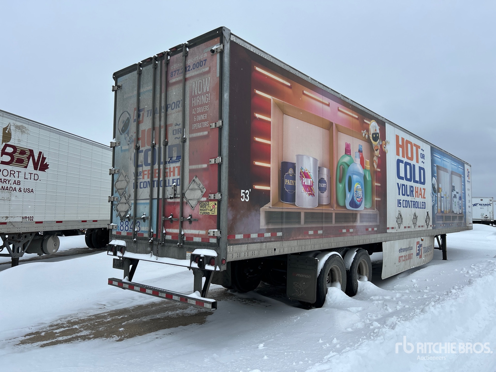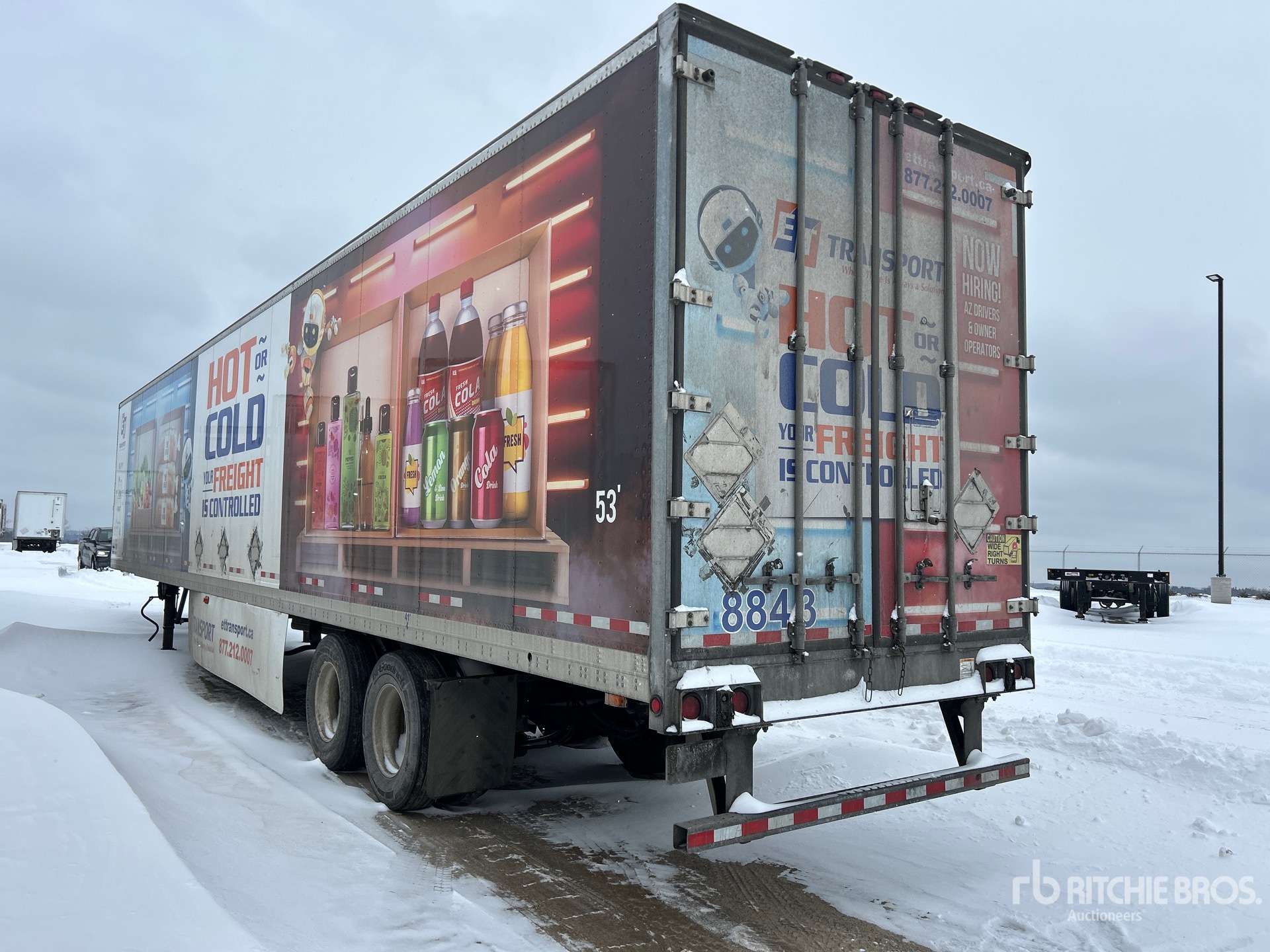 Thermo King C-600 Refrigeration Unit, Air Ride Sliding Suspension, Side Skirts, Ducted Floor, Swing Door, 11R22.5 Tires, 74173 lb GVWR