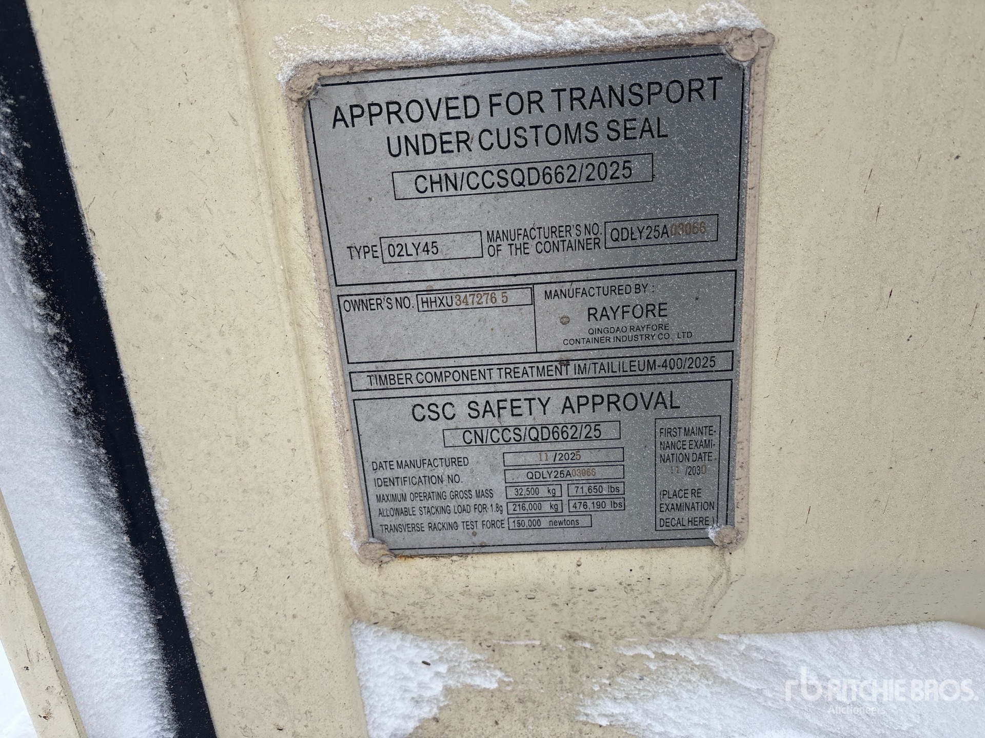 Ein qualifizierter Mitarbeiter von Ritchie Bros. hat detaillierte Geräteinformationen erfasst und Funktionstests an den Schlüsselkomponenten dieser Artikel durchgeführt. Sie oder ein Bevollmächtigter können auch alle Artikel vor Ort überprüfen, bevor Sie am Auktionstag ein Gebot abgeben.