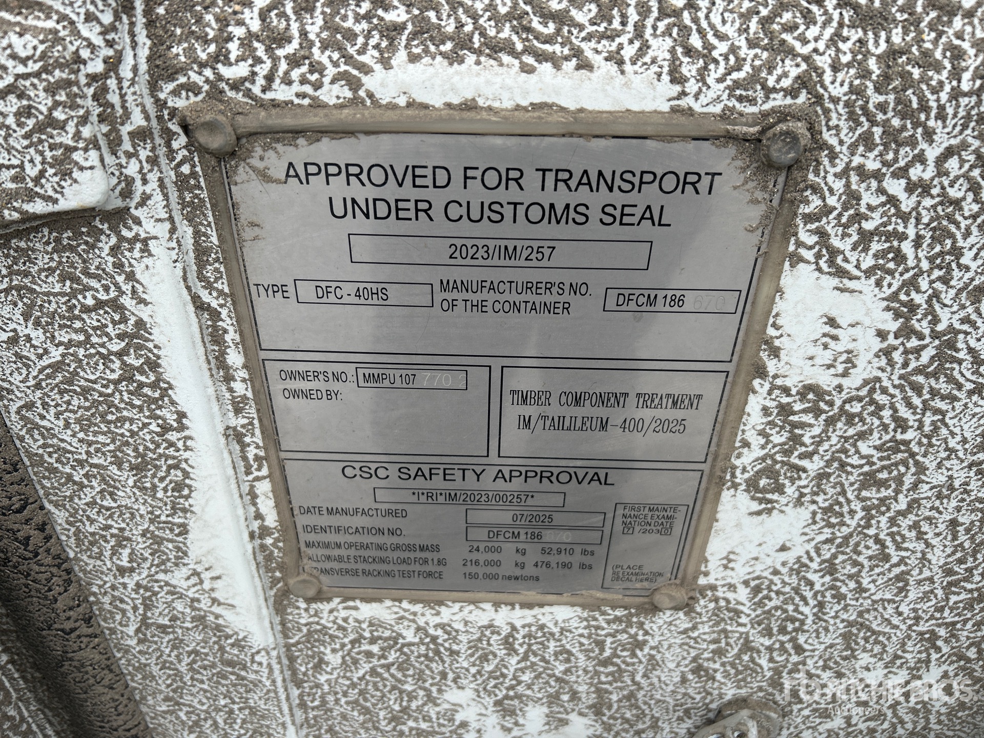 Alle Abmessungen sind ausschließlich Schätzwerte. Die tatsächlichen Dimensionen unter Last können je nach LKW/Anhängerhöhe sowie Position/Konfiguration des aufgeladenen Geräts abweichen. Es liegt in der Verantwortung des Käufers, vor dem Verlassen unseres Auktionsgeländes alle Ladungen zu vermessen, um zu gewährleisten, dass die Ladung sicher transportiert werden kann. Alle Abmessungen müssen vom Käufer verifiziert werden. Verlassen Sie sich zu Transportzwecken nicht ausschließlich auf die hier genannten Abmessungen.