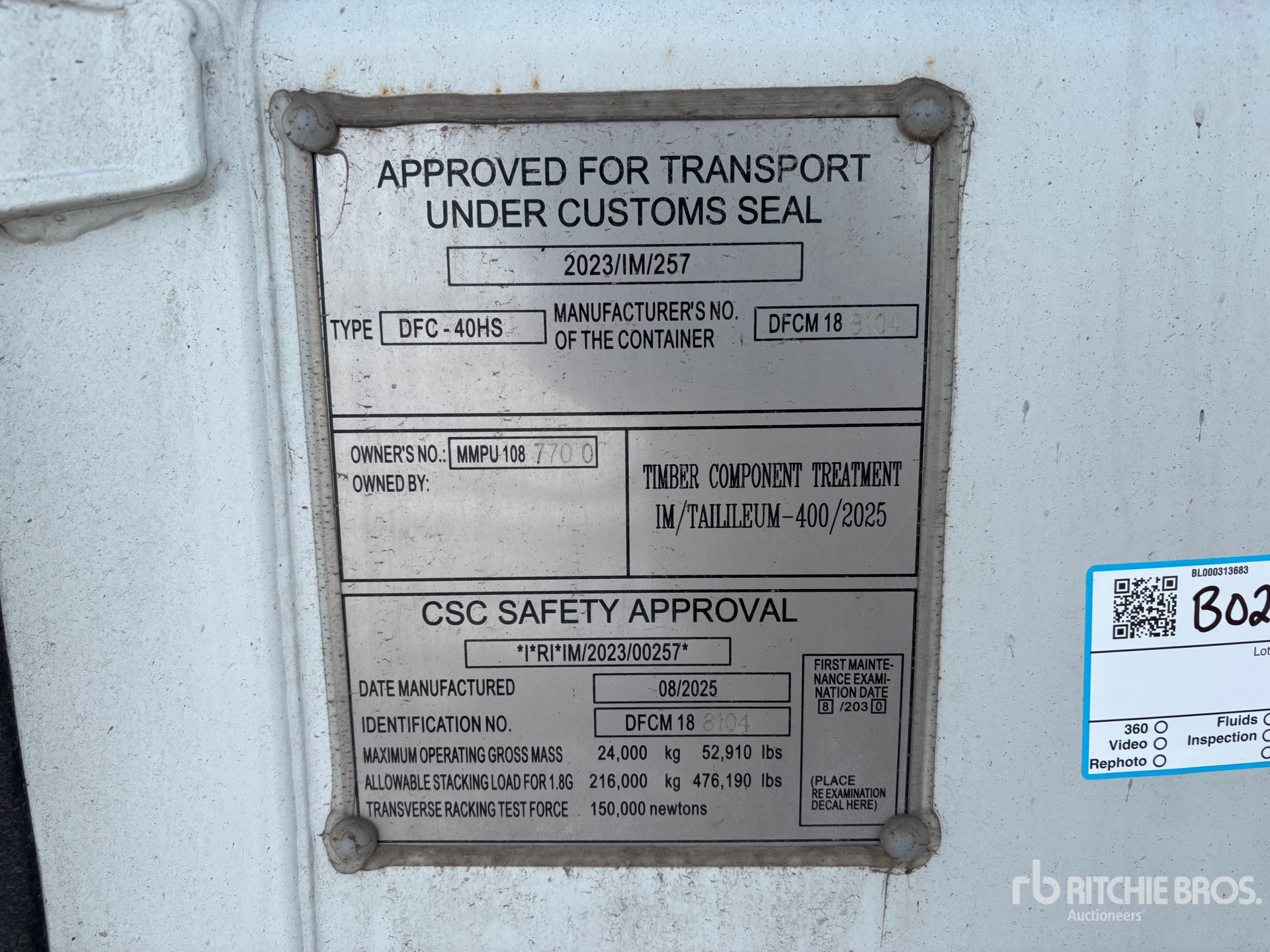 Ein qualifizierter Mitarbeiter von Ritchie Bros. hat detaillierte Geräteinformationen erfasst und Funktionstests an den Schlüsselkomponenten dieser Artikel durchgeführt. Sie oder ein Bevollmächtigter können auch alle Artikel vor Ort überprüfen, bevor Sie am Auktionstag ein Gebot abgeben.