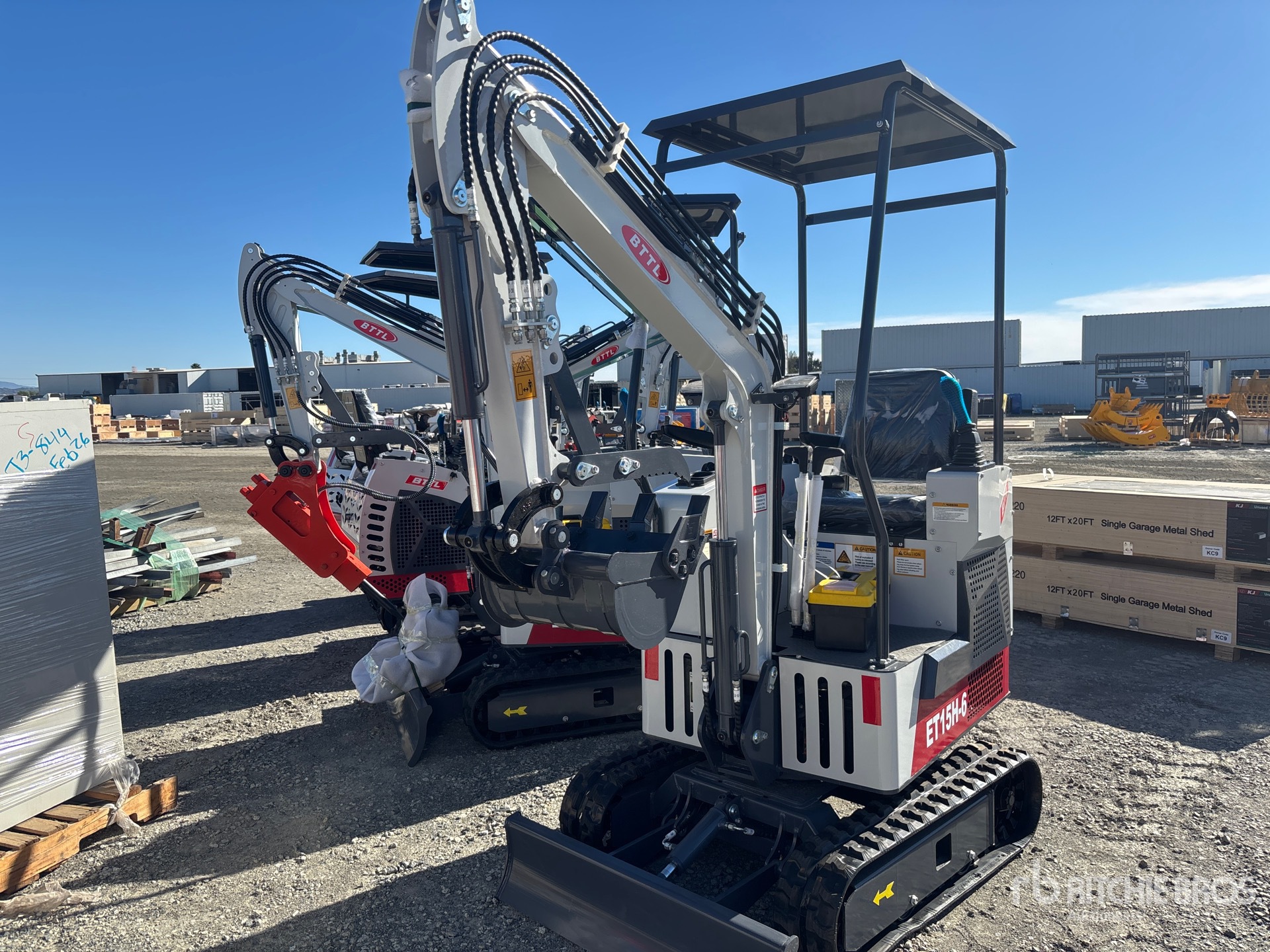 2 ft 7 in Stick, Auxiliary Hydraulic Plumbing, Backfill Blade, 7 in Rubber Tracks, 14 in Digging Bucket, Manual Thumb