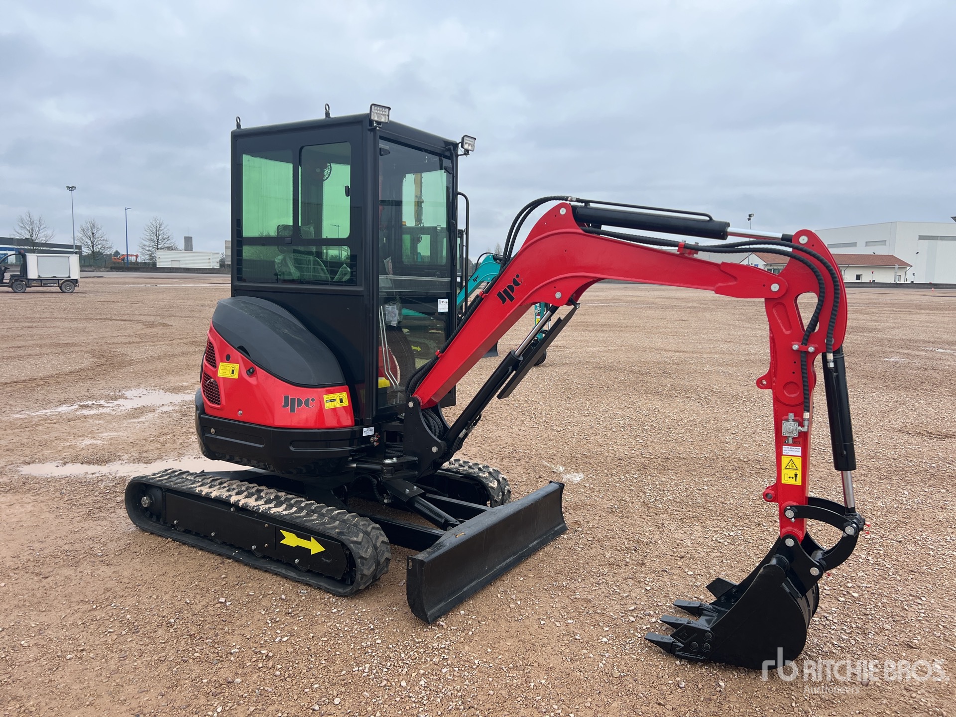 Enclosed Cab, Swing Boom, 1000 mm Stick, Auxiliary Hydraulic Plumbing, Backfill Blade, Rubber Tracks, 500 mm Digging Bucket