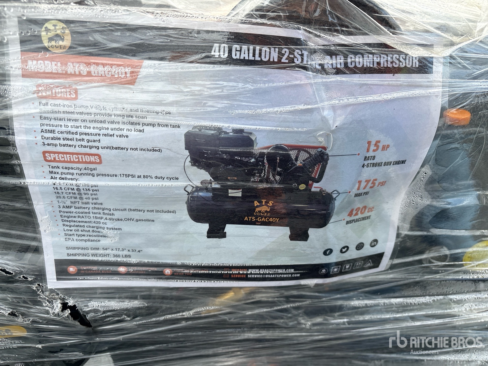 175 psi Working Pressure, 2025 US EPA Label, 1 Cylinder 15 hp 420 cc Gasoline Engine