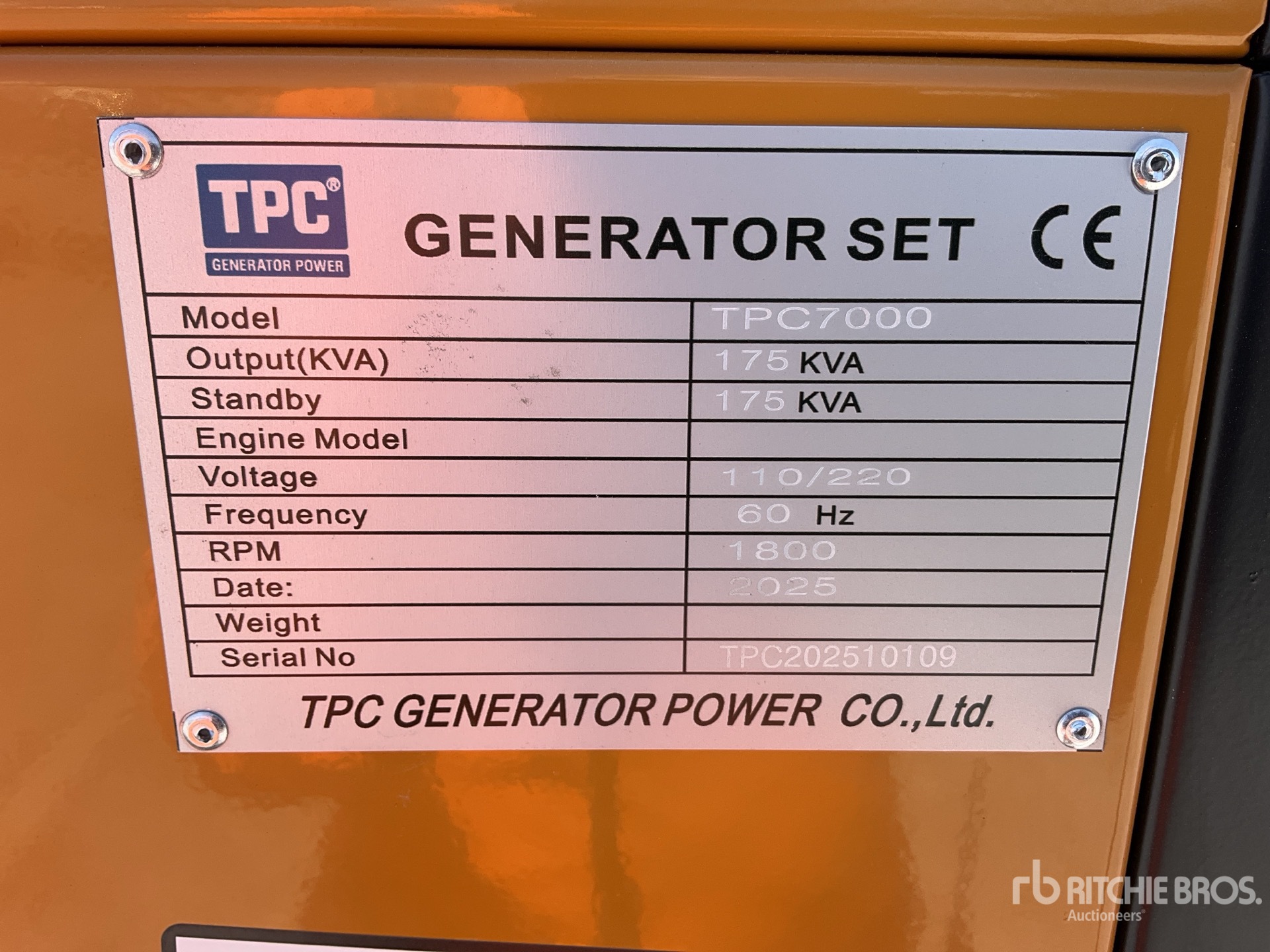 6 Cylinder Diesel Engine, 175 kVA/ Rated 3 Phase Output, / 110 V / 220 V Rated Voltage, Sound Attenuated, Bottom Mounted Fuel Tank