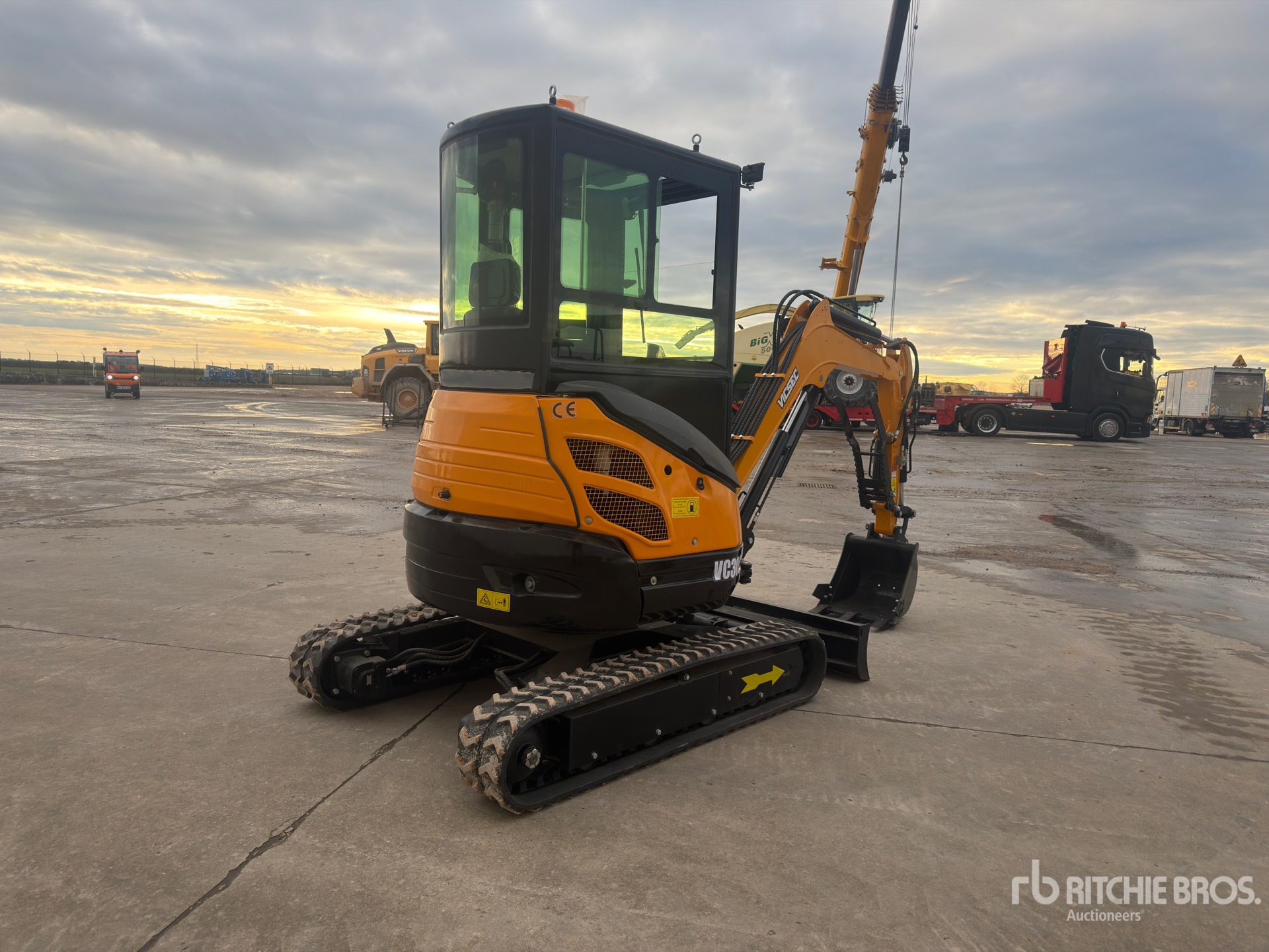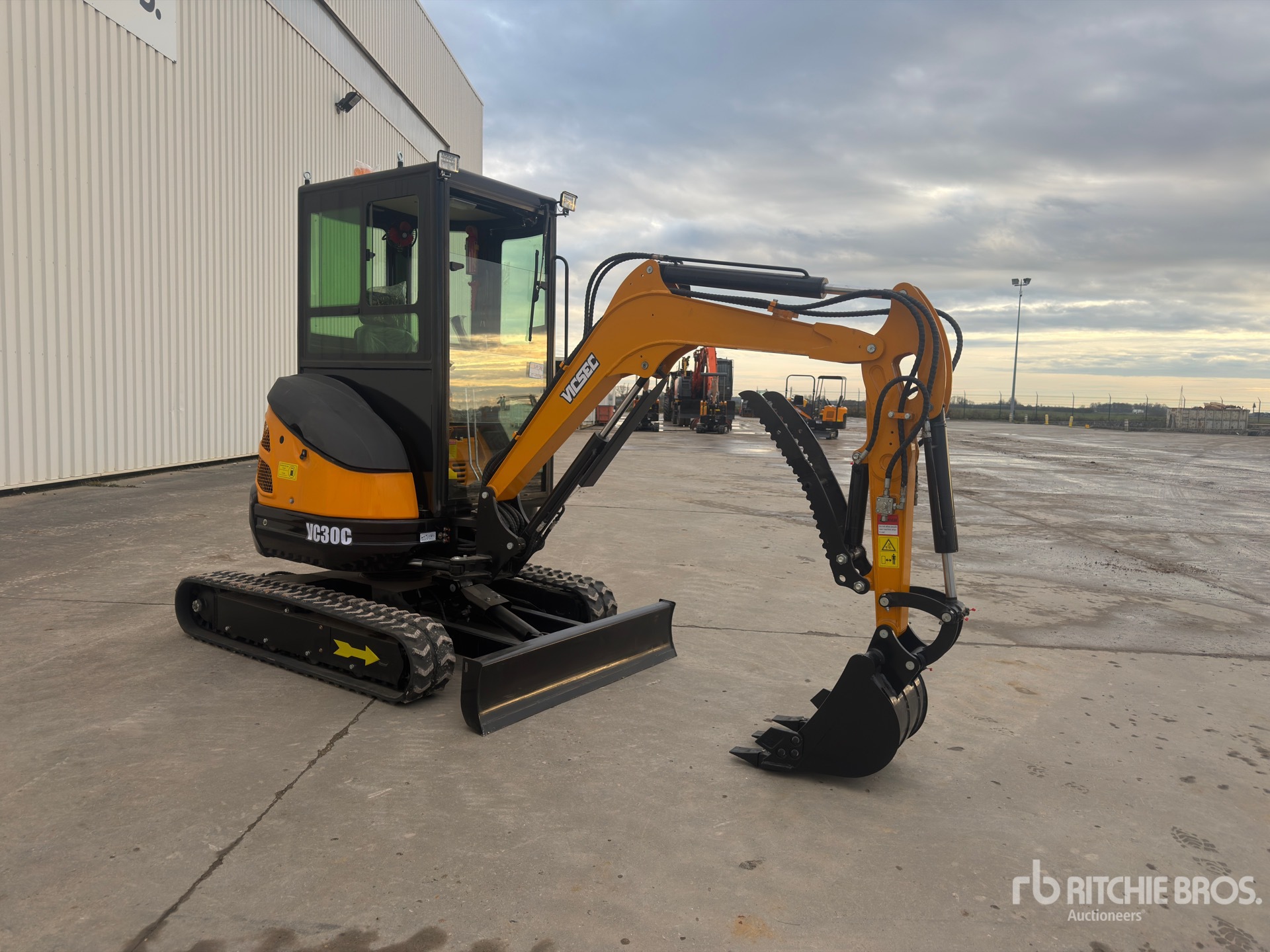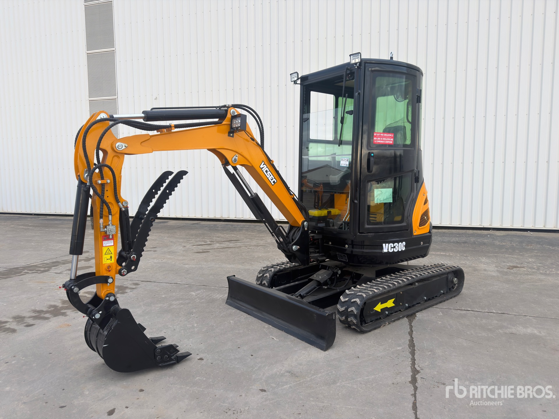 Enclosed Cab, Swing Boom, 1000 mm Stick, Auxiliary Hydraulic Plumbing, Backfill Blade, Rubber Tracks, 490 mm Digging Bucket, Hydraulic Thumb