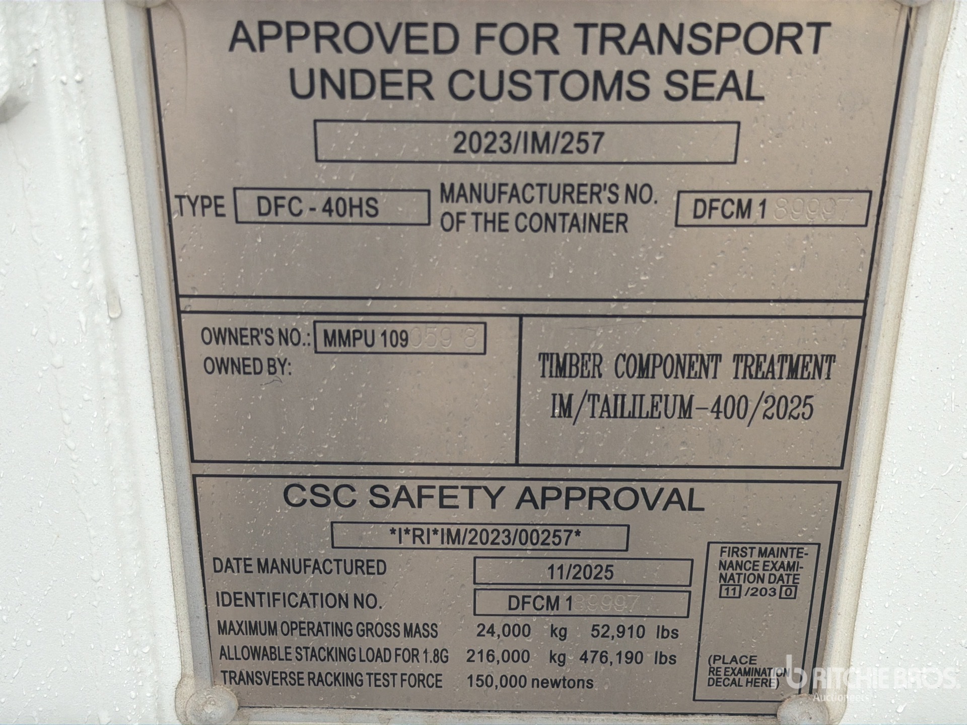 Alle Abmessungen sind ausschließlich Schätzwerte. Die tatsächlichen Dimensionen unter Last können je nach LKW/Anhängerhöhe sowie Position/Konfiguration des aufgeladenen Geräts abweichen. Es liegt in der Verantwortung des Käufers, vor dem Verlassen unseres Auktionsgeländes alle Ladungen zu vermessen, um zu gewährleisten, dass die Ladung sicher transportiert werden kann. Alle Abmessungen müssen vom Käufer verifiziert werden. Verlassen Sie sich zu Transportzwecken nicht ausschließlich auf die hier genannten Abmessungen.