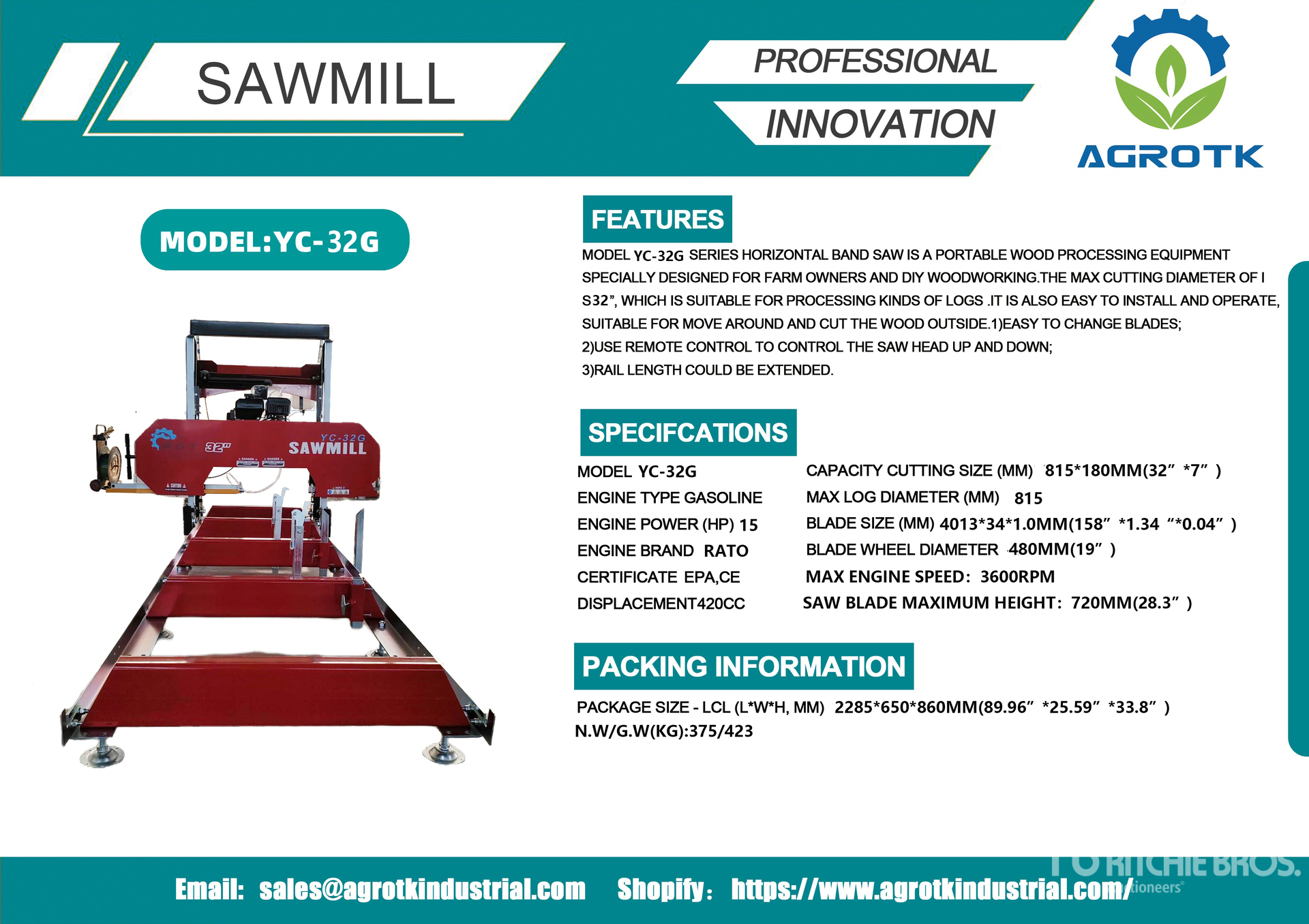 Gasoline Powered, 32 in Max Log Diameter
