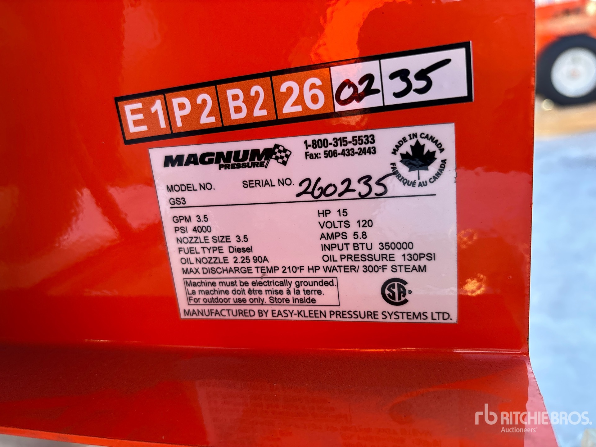 4000 psi Rating, Water Heater, Hose, Spray Wand, Lifan SCLGS.4452GM 1 Cylinder 15 hp 420 cc Gasoline Engine
