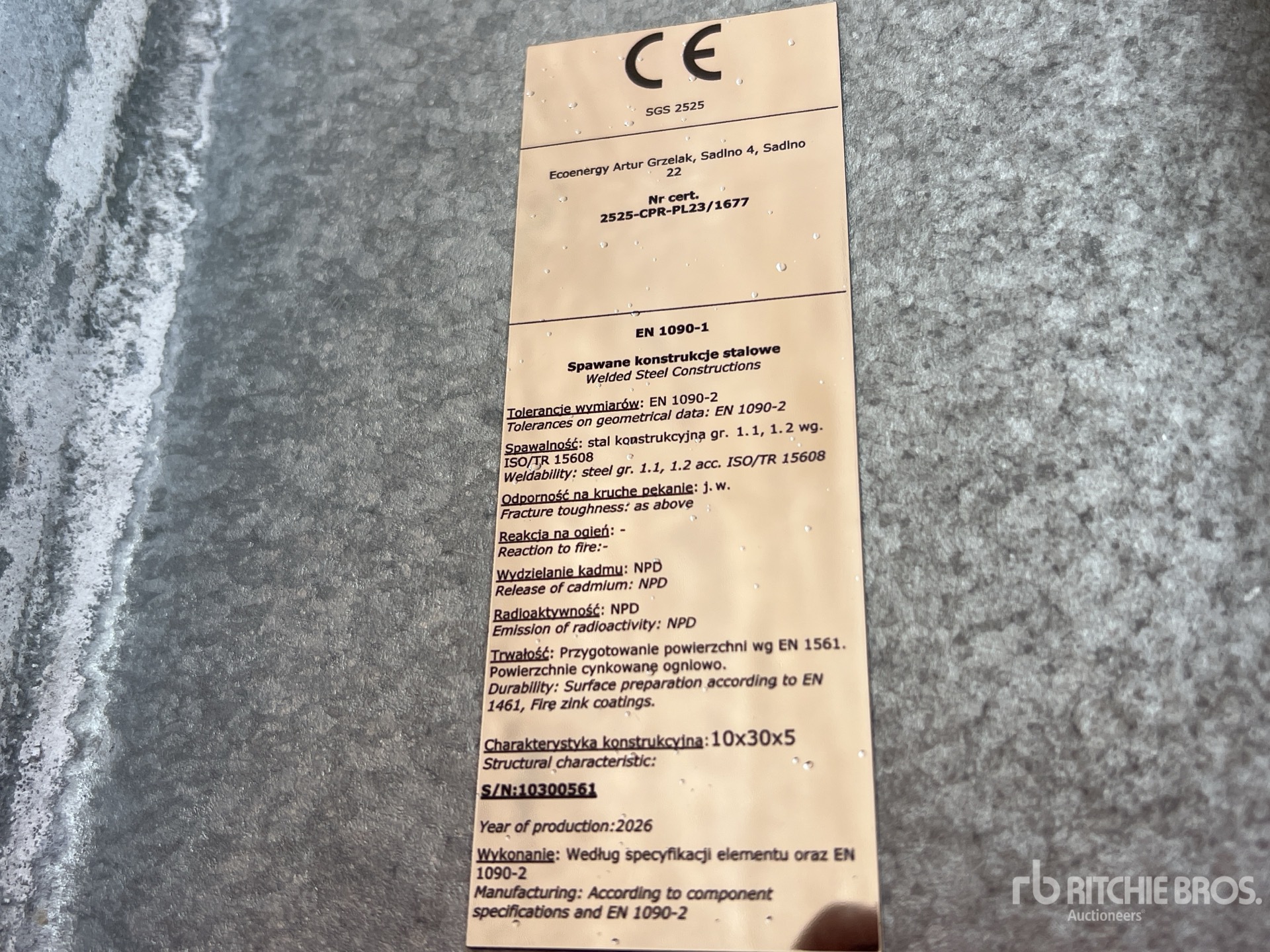 Die detaillierten Artikelinformationen stellen einen begrenzten Bericht dar, und Ritchie Bros. Auctioneers hat ausschließlich die Komponenten oder Aspekte der Geräte inspiziert, die hierin ausdrücklich aufgeführt sind. Sofern nicht ausdrücklich anders angegeben, gewähren wir keinerlei Zusicherungen oder Garantie, weder ausdrücklich noch stillschweigend, bezüglich der Geräte und ihrer Bestandteile einschließlich, aber nicht beschränkt auf Zusicherungen oder Garantien bezüglich Funktionalität, Konformität oder Einhaltung von Sicherheitsstandards, Forderungen zuständiger Behörden oder Regulierungsbehörden, Eignung für einen besonderen Zweck oder Marktgängigkeit. Es wird Ihnen ausdrücklich empfohlen, vor dem Bieten selbst eine genaue Prüfung der Artikel und Geräte durchzuführen.