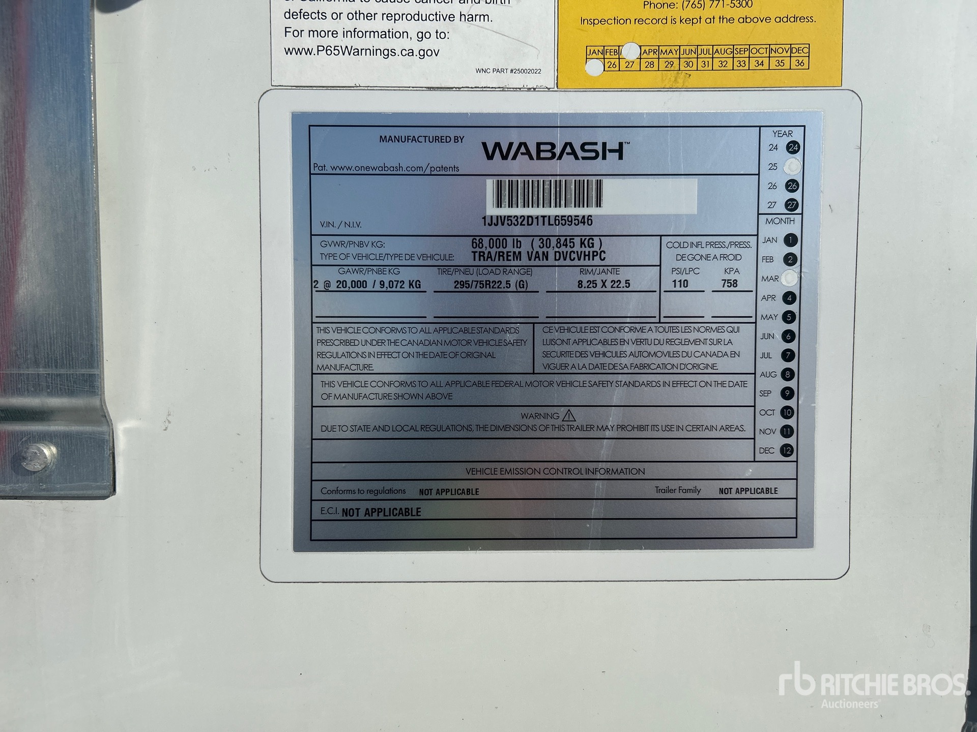 Air Ride Sliding Suspension, Hardwood Floor, Swing Door, 295/75R22.5 Tires 68000 lb GVWR