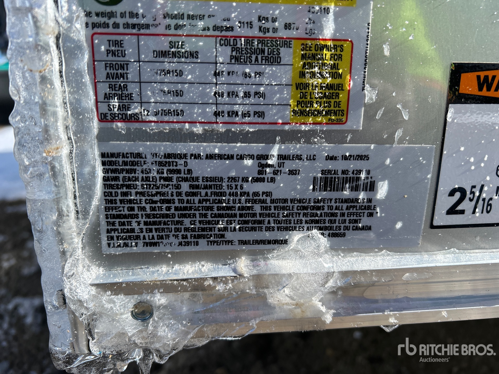 Ball Hitch, Spring Suspension, Electric Brakes, 96 in Deck Width, 100 in Overall Width, Side Door, 225/75R15 Tires, 9990 lb GVWR