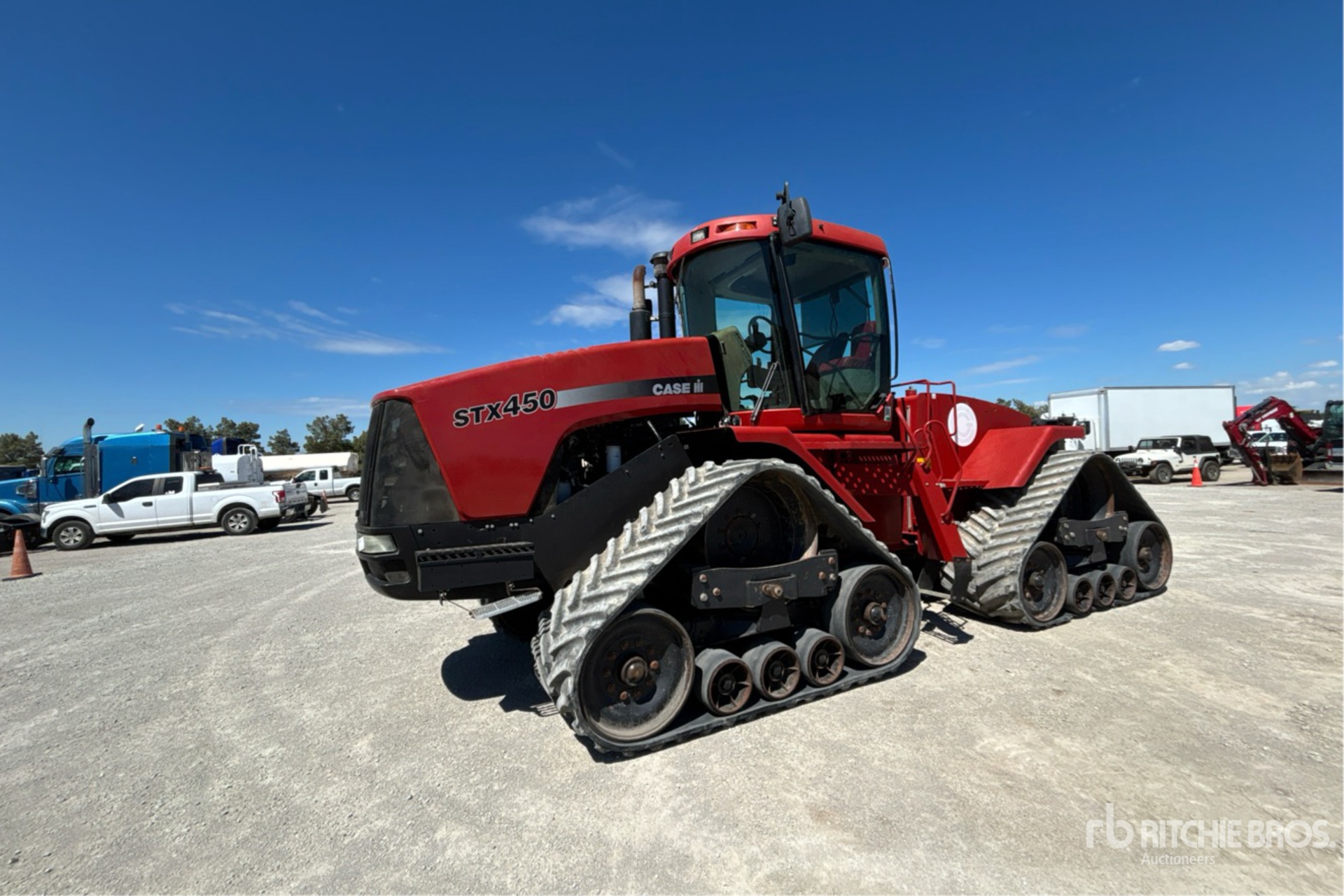 Enclosed Cab, Air Conditioner, Air Ride Seat, 16 Forward 2 Reverse, 450 hp Engine, 2002 US EPA Label, 5 Rear Remotes, ISOBUS, Big 1000 PTO, 3-Point Hitch w/ Quick Hitch, Drawbar, Soucy 30 in Tracks, 58 in Track Spacing