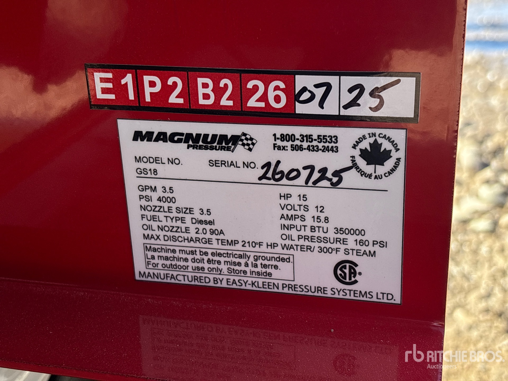 4000 psi Rating, Water Heater, 3.5 gal Water Supply, Hose, Spray Wand, Easy-Kleen 1 Cylinder 15 hp 420 cc Gasoline Engine