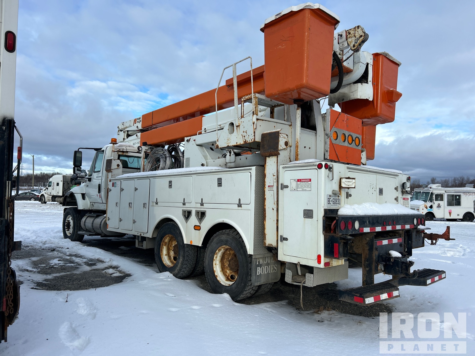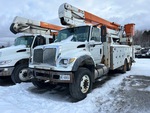 Cummins 6 Cylinder Diesel Engine, 12821 Engine hrs, Eaton Fuller 10-Speed Manual Transmission, Differential Lock, 7268 kg Front Axle, 20866 kg Rears, Air Ride Cab, 315/80R22.5 Front Tires, 11R22.5 Rear Tires, Dual Steering Boxes, Double Frame, Spring Suspension, 239 in Wheelbase, PTO, Wet Kit, 350 lb Capacity, Center Mounted, Two-Person Articulating-Telescopic Boom, Utility Body, Material Handling Jib, A-Outriggers, Rear Outriggers, 20 ft x 99 in Bed, Pintle Hitch