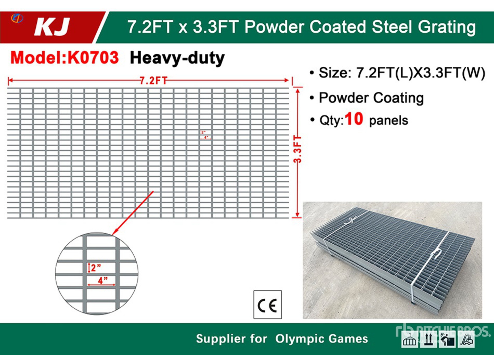 • Quantity of (10) 2026 KJ K0703 Steel Grating (Unused)
