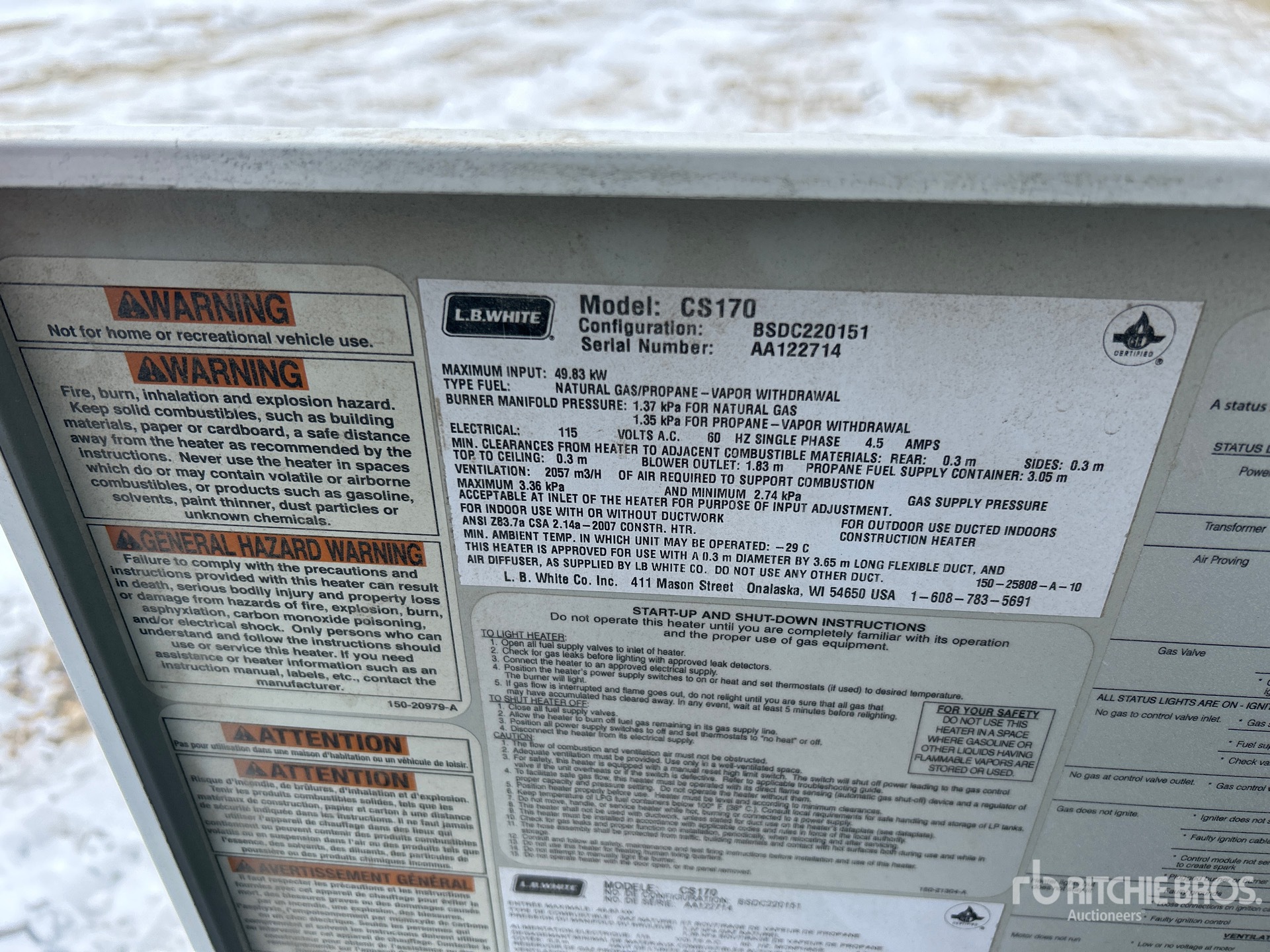 Die detaillierten Artikelinformationen stellen einen begrenzten Bericht dar, und Ritchie Bros. Auctioneers hat ausschließlich die Komponenten oder Aspekte der Geräte inspiziert, die hierin ausdrücklich aufgeführt sind. Sofern nicht ausdrücklich anders angegeben, gewähren wir keinerlei Zusicherungen oder Garantie, weder ausdrücklich noch stillschweigend, bezüglich der Geräte und ihrer Bestandteile einschließlich, aber nicht beschränkt auf Zusicherungen oder Garantien bezüglich Funktionalität, Konformität oder Einhaltung von Sicherheitsstandards, Forderungen zuständiger Behörden oder Regulierungsbehörden, Eignung für einen besonderen Zweck oder Marktgängigkeit. Es wird Ihnen ausdrücklich empfohlen, vor dem Bieten selbst eine genaue Prüfung der Artikel und Geräte durchzuführen.