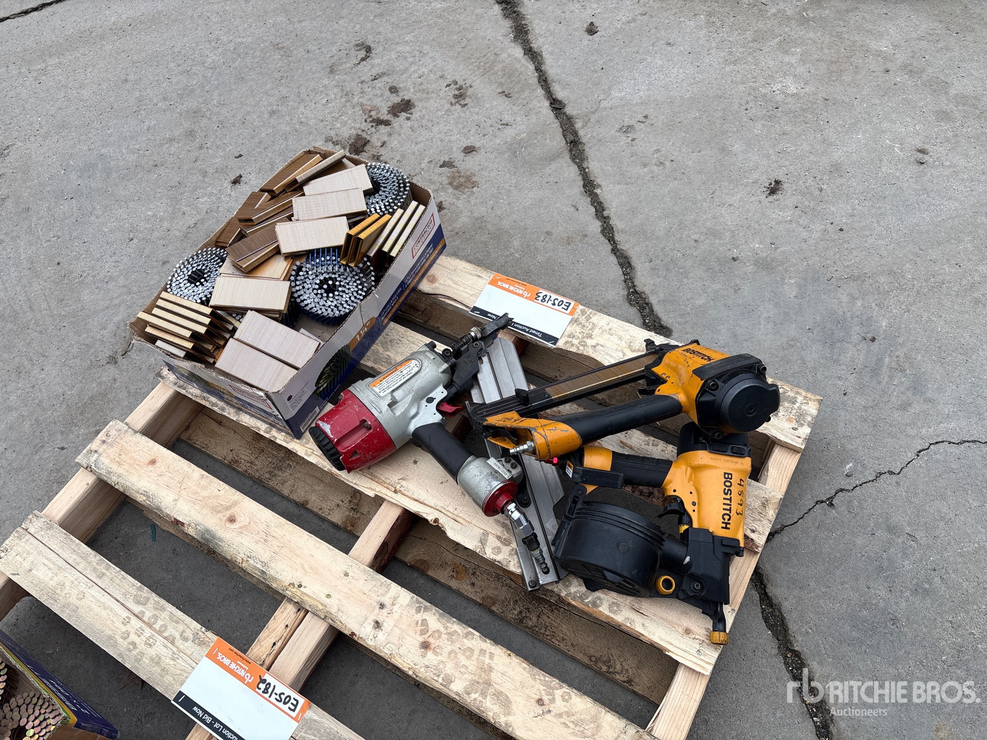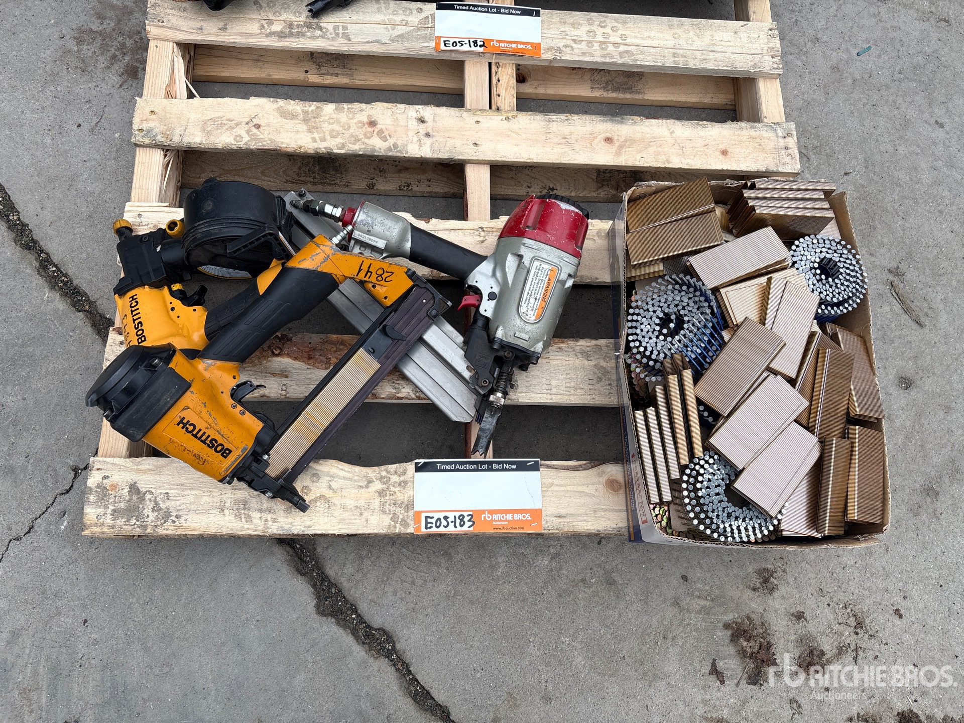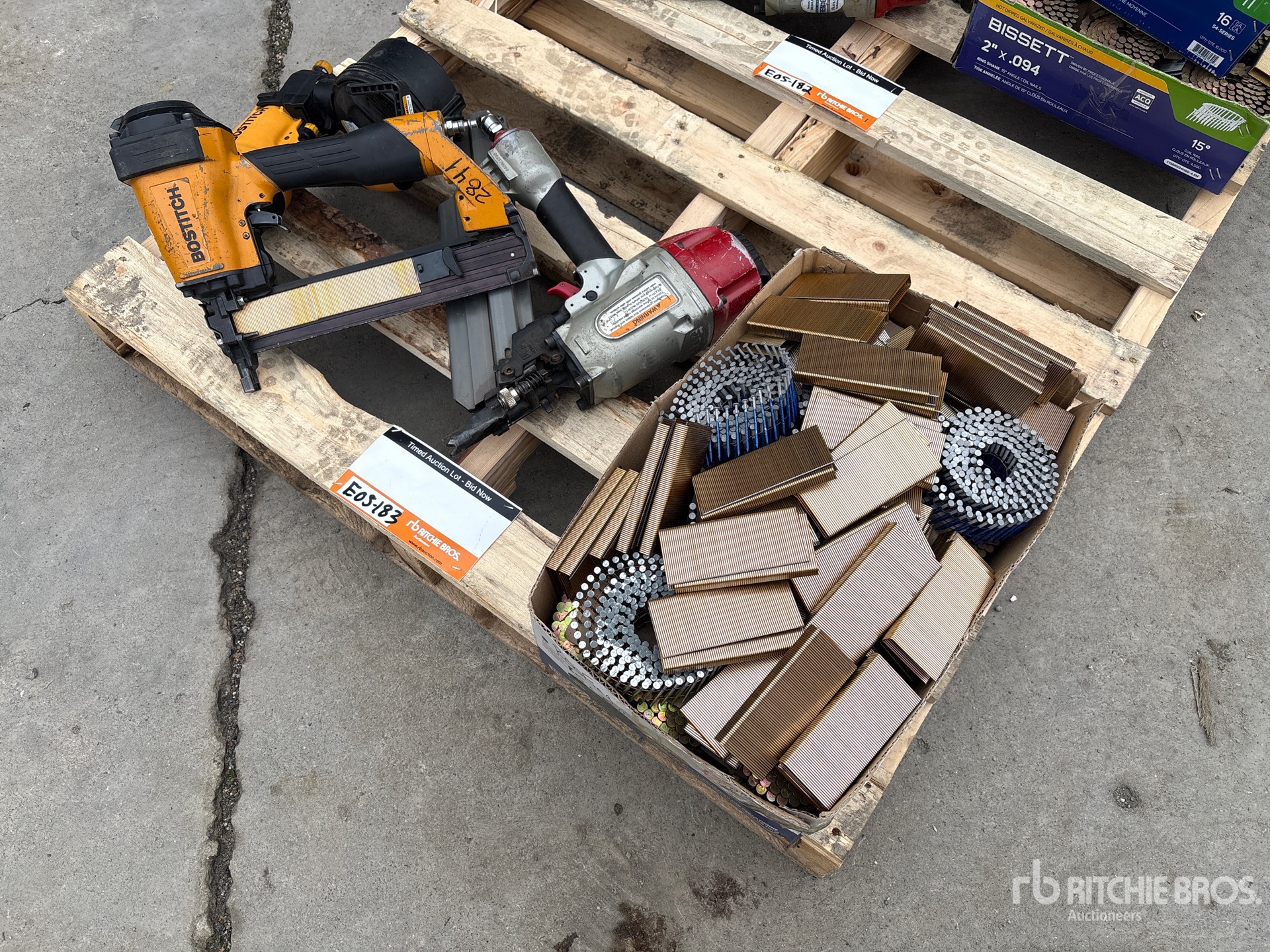 (2) Air Nailers, (1) Staple Gun, Quantity of Unused Staples and Nails