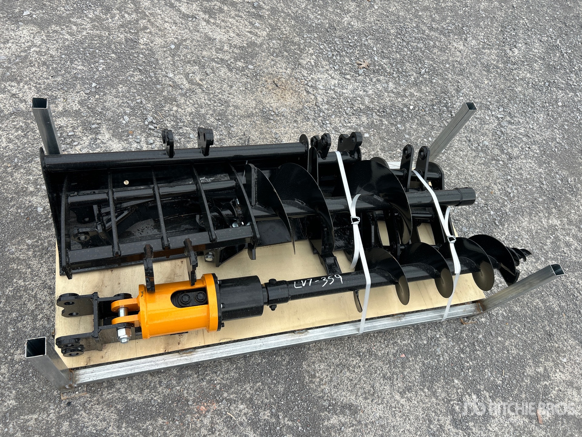 (1) Rake, (1) Ripper, (1) Grapple, (1) Auger w/ 12 in & 16 in Auger Bits, (1) 8 in Narrow Bucket, (1) 24 in Bucket, (1) 32 in Bucket